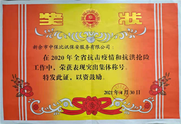 2021年7月13日上午,新余市公安局治安支隊副大隊長歐陽杰和羅東波代表省公安廳治安警察總隊為我公司頒發“2020年省抗擊疫情和抗洪搶險突出集體和個人”榮譽獎狀。