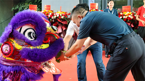 隨后,迎來了具傳統特色的點睛儀式。董事長馮道寬與總經理賴海生手持朱筆,飽蘸濃墨,為祥獅點睛。一點左眼,遍地生金!二點右眼,財源廣進!三點獅舌,大吉大利!四點天庭,四海馨平!點睛之筆落下,祥獅瞬間煥發神采,象征著公司在新環境中必將目光如炬,活力煥發,前程遠大,宏圖大展!