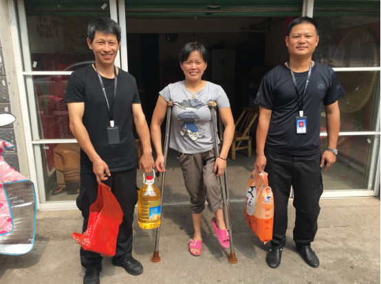 2017年9月30日,公司金融安保大隊大隊長李衛平、培訓中心主任張志文一行代表公司工會走訪慰問困難職工:建設銀行保安員葉強、趙軍生、時朝明,交通銀行保安員李小華,農商銀行保安員艾國忠、詹小星,工商銀行保安員胡子琪、劉新貴,中國銀行保安員陳水牙、劉紹斌,江西銀行監控中心監控員姚鴻梅,贛州銀行監控中心監控員潘任妹,天網監控中心阮琴豐、熊夢杰,行政部后勤人員歐陽晚,向他們表示親切慰問和美好的中秋祝福,并給困難職工送上慰問品,把公司的關懷送到困難職工手中。